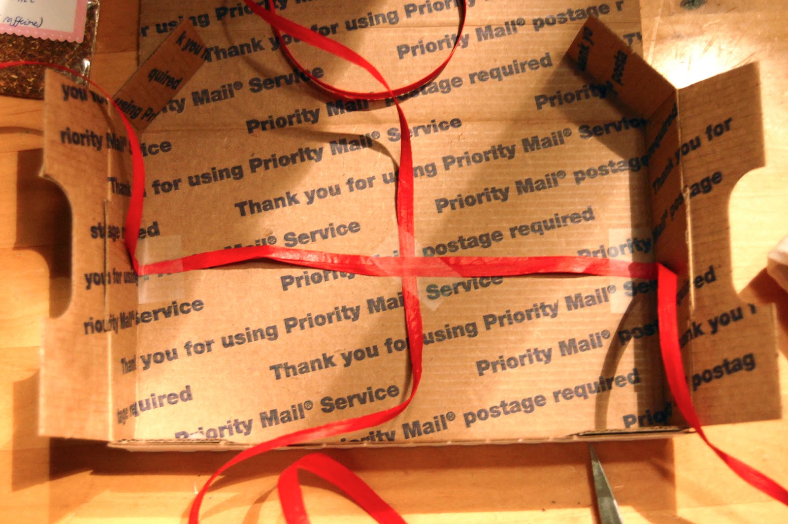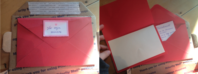 I’m at home from college during my winter break, and wanted to put together my Valentine’s package before going back to school, since most of my craft supplies are here. As some of you may know, international shipping is wildly expensive, so in an attempt not to go bankrupt, I managed to fit all my gifts in the smallest USPS flat rate shipping box, the international shipping rate of which is $16.75 (still expensive, but considerably less than the next box up, which is $49.75, or FedEx, which is an unbelievable $116.75).
