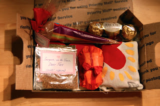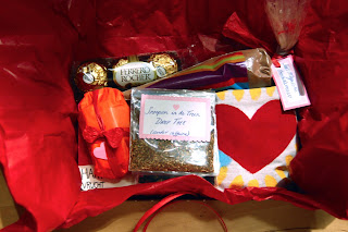 - Two decorated tins of confectionery hearts (hidden under the orange package above)